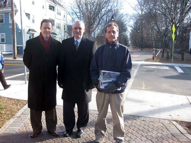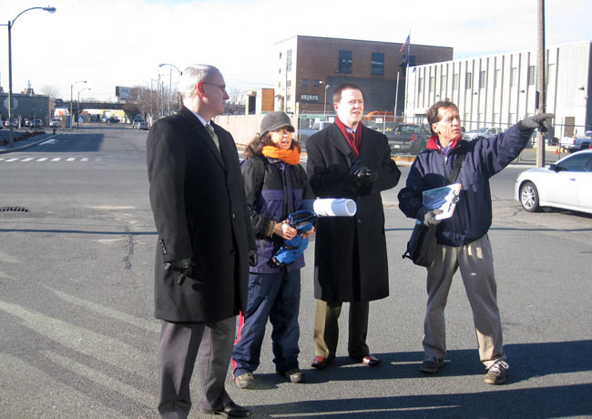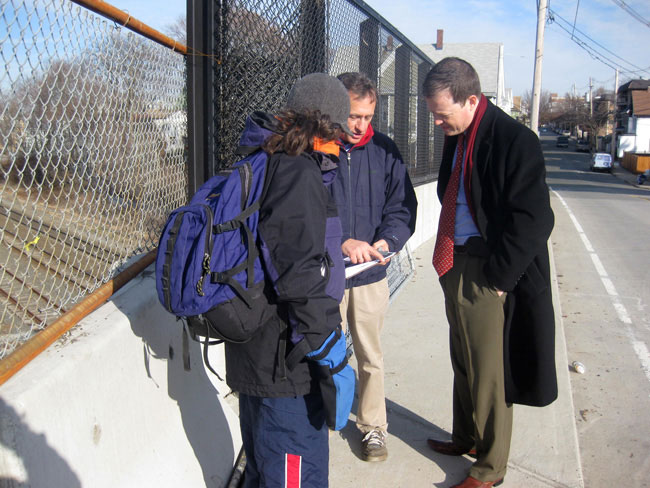 On December 13, a few folks from Friends of Community Path gave a tour of part of the future Path route to Richard A. Davey (CEO of the Massachusetts Department of Transportation) and David Mohler (Chair of the MPO Transportation Planning and Programming Committee).