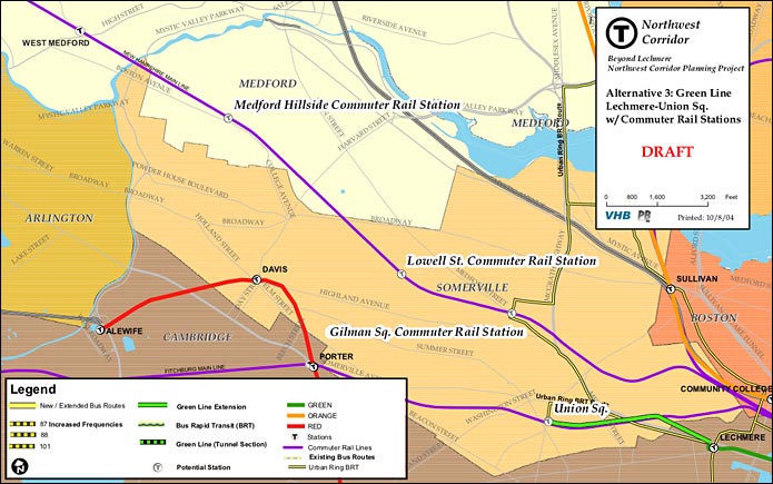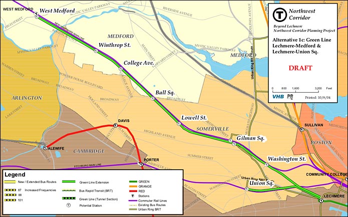 Green Line extended to Medford, Urban Ring Bus Rapid Transit to Union Square