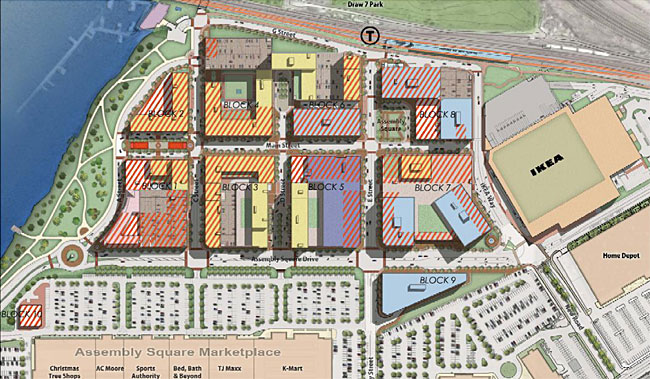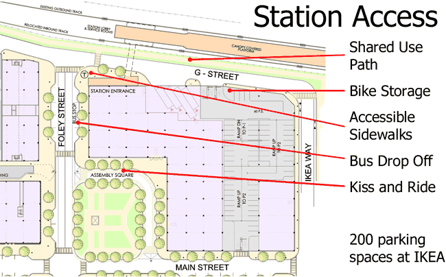 At the recent public meeting on Assembly Square, the MBTA presented its preferred station design. Download the slides (PDF). Or keep reading to see some of the maps and detailed diagrams.