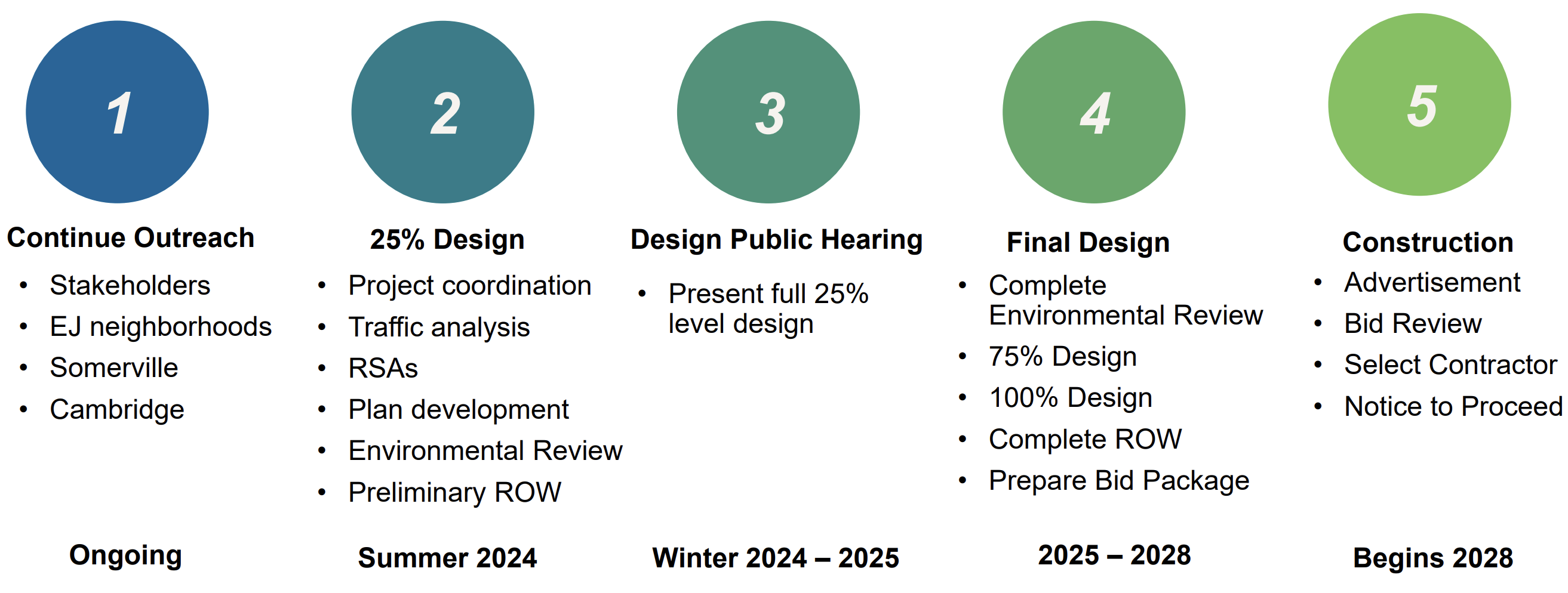 This year MassDOT is advancing the project to the 25% design process. According to the timeline in the presentation, construction would begin in 2028.