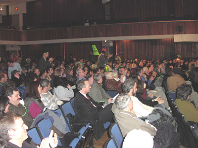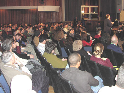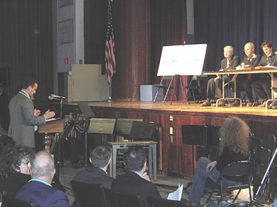 The Somerville High School Auditorium was packed tonight as over 600 residents gathered to demand that the State honor its commitment to extend the Green Line. The Executive Office of Transportation (EOT) and the Department of Environmental Protection (DEP) once again tried to talk about a process to re-evaluate their commitments (like they did before). But the people of Somerville again let them know that we will accept no substitutes!