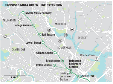 Boston Globe: “State wants to extend Green Line to Mystic River”