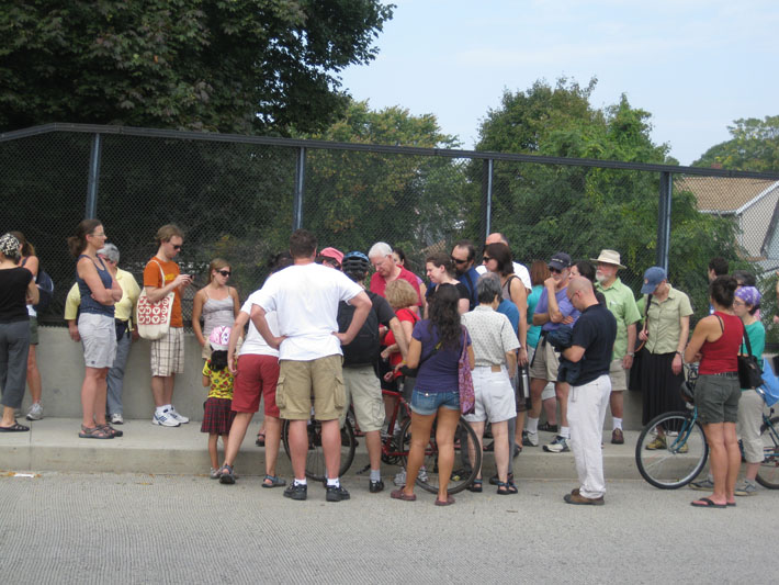 On September 25, more than 50 people hiked along the future Green Line route where the Path will someday be. The tour was led by Friends of the Community Path, which (like STEP) is fighting for getting the Path designed and built. Currently, the State is planning only to design the Path from Lowell St. to Inner Belt. We believe it should be designed all the way to Lechmere and built along with the Green Line construction.